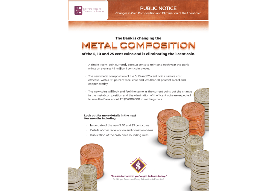 In 2018, the Central Bank of Trinidad and Tobago demonetized the one-cent coin, citing high production costs and low demand as the primary reasons for the decision. The move was met with mixed reactions from the public, with some expressing concern over the potential impact on prices, and others welcoming the simplification of transactions. The Central Bank assured the public that the demonetization would not significantly impact the economy, as the one-cent coin accounted for less than 0.1% of the total value of all coins in circulation. The move was also aligned with a global trend towards reducing the use of small-denomination coins, which are often costly to produce and handle. Demonetizing the one-cent coin is part of an ongoing effort to modernise Trinidad and Tobago’s currency and payment systems.