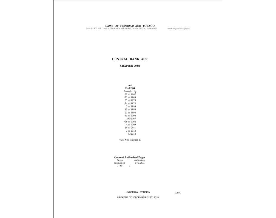 The Central Bank of Trinidad and Tobago is established